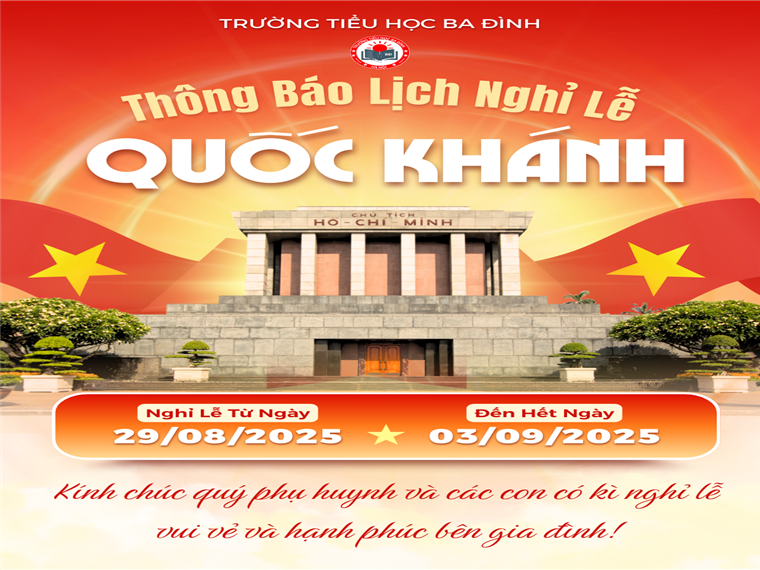 Trường Tiểu học Ba Đình thông báo lịch nghỉ Lễ Quốc Khánh 2/9
