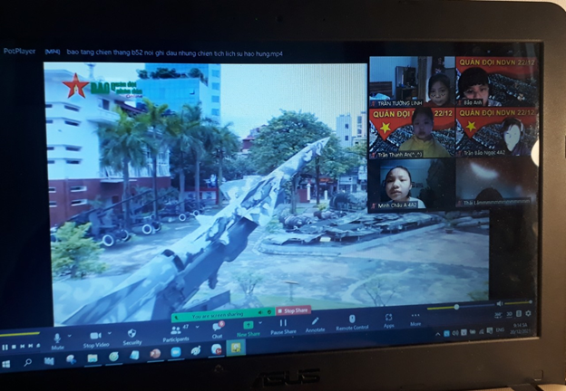 Do tình hình dịch bệnh Covid-19 còn diễn biến phức tạp, các bạn nhỏ trường Tiểu học Ba Đình không thể di chuyển đến địa điểm thực tế, nhưng các bạn học sinh vẫn đến được với Bảo tàng chiến thắng B52 thông qua những thước phim lịch sử với hình ảnh rõ nét trong giờ sinh hoạt Đội, sinh hoạt Sao nhi đồng với chuyên đề: “ Hành trình đi tìm địa chỉ đỏ”.