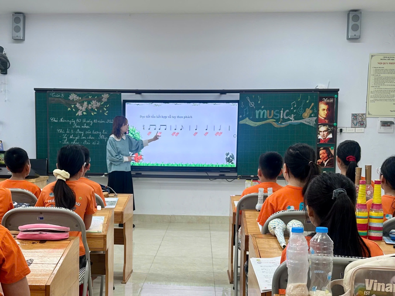 Tiếp đó, hoạt động Đọc nhạc – Bài số 2 được triển khai sáng tạo. Học sinh được luyện đọc cao độ, tiết tấu kết hợp vỗ tay theo nhịp.