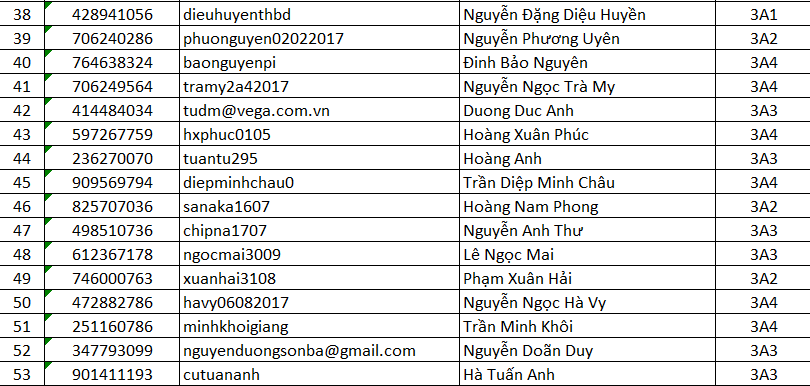 Trường Tiểu học Ba Đình thông báo Danh sách học sinh tham gia Sân chơi Trạng Nguyên Tiếng Việt năm học 2025 - 2026 - Vòng thi Hương - Khối 3