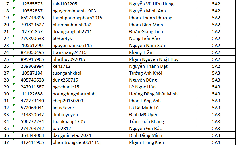 Danh sách học sinh Khối 5 tham gia Sân chơi Trạng nguyên Tiếng Việt 2025 - 2026 - Vòng Sơ khảo - Cấp trường
