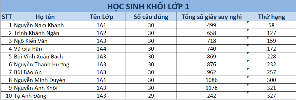 Trường Tiểu học Ba Đình thông báo Danh sách học sinh tham gia Sân chơi Trạng Nguyên Tiếng Việt năm học 2025 - 2026 - Vòng thi Hương - Khối 1