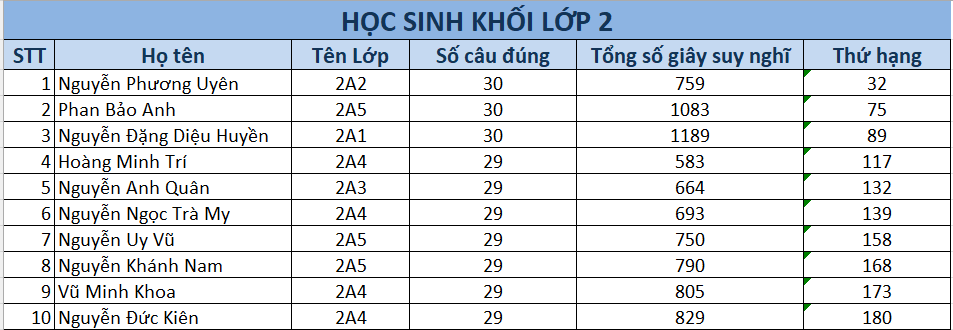 Tuyên dương các học sinh khối 2 tích cực tham gia Vòng sơ loại số 1 - Cuộc thi Đấu trường Toán học - Tiếng Anh