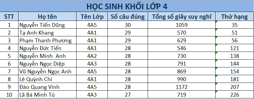 Tuyên dương các học sinh khối 4 tích cực tham gia Vòng sơ loại số 1 - Cuộc thi Đấu trường Toán học - Tiếng Anh