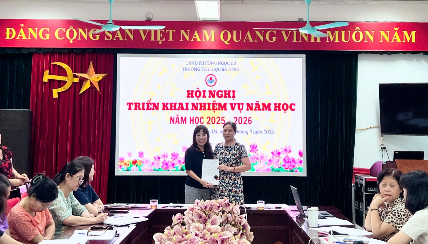 Hòa trong không khí rộn ràng chào đón năm học mới, sáng ngày 27 tháng 8 năm 2025, trường Tiểu học Ba Đình đã long trọng tổ chức Hội nghị triển khai nhiệm vụ năm học 2025–2026. Hội nghị có sự tham dự đầy đủ của Ban giám hiệu, toàn thể cán bộ giáo viên, nhân viên nhà trường.