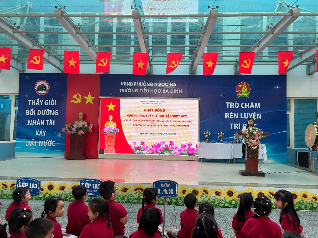 Sáng ngày 3 /10, trường Tiểu học Ba Đình đã long trọng tổ chức Lễ phát động “Hưởng ứng tuần lễ học tập suốt đời” năm 2025. Đây là hoạt động có ý nghĩa sâu sắc, nhằm lan tỏa tinh thần học tập không ngừng đến toàn thể cán bộ, giáo viên, học sinh và phụ huynh, đồng thời khẳng định vai trò của giáo dục trong sự phát triển bền vững của đất nước.