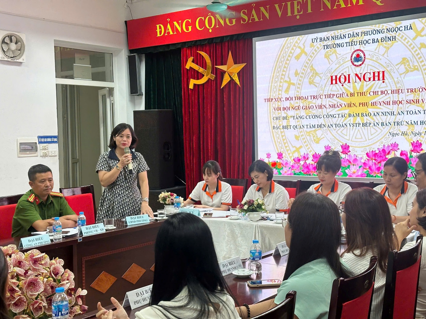 Hội nghị có sự tham gia của Ban giám hiệu nhà trường, đại biểu các ban ngành, bà Ngô Thị Thúy Lan – Trưởng phòng Văn hóa – Xã hội phường Ngọc Hà, ông Nguyễn Trần Khiết – Cán bộ công an phường Ngọc Hà, ông Hà Duy Phương – tổ tự quản phường, bà Phùng Thị Phượng – Tổ trưởng TDP số 4 cùng tập thể giáo viên, nhân viên và đại diện trưởng ban PHHS các lớp.