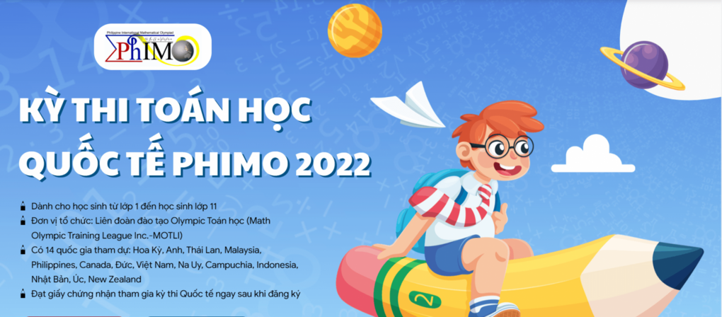 Kỳ thi Olympic Toán quốc tế PhIMO (Philippine International Mathematical Olympiad) được tổ chức hằng năm bởi Liên đoàn đào tạo Olympic Toán học Philippines, dành cho học sinh có năng khiếu Toán từ lớp 2 đến lớp 11. Kỳ thi được tổ chức với mục đích thúc đẩy việc học và nghiên cứu toán học ở các trường học, tổ chức giáo dục trên thế giới; giúp học sinh Việt Nam có cơ hội giao lưu, tương tác với học sinh trên toàn thế giới; thúc đẩy tình yêu của học sinh đối với môn Toán và vinh danh những tài năng toán học trẻ trên thế giới.