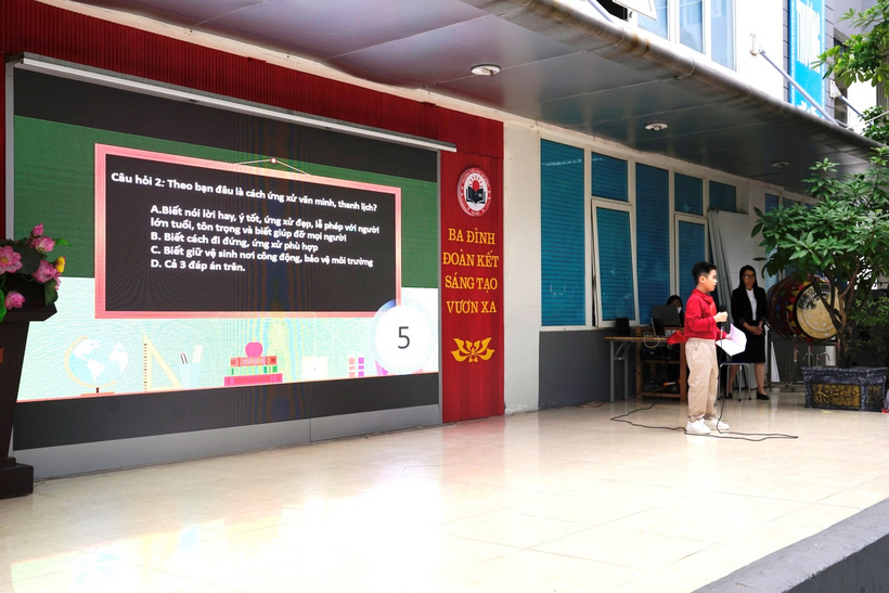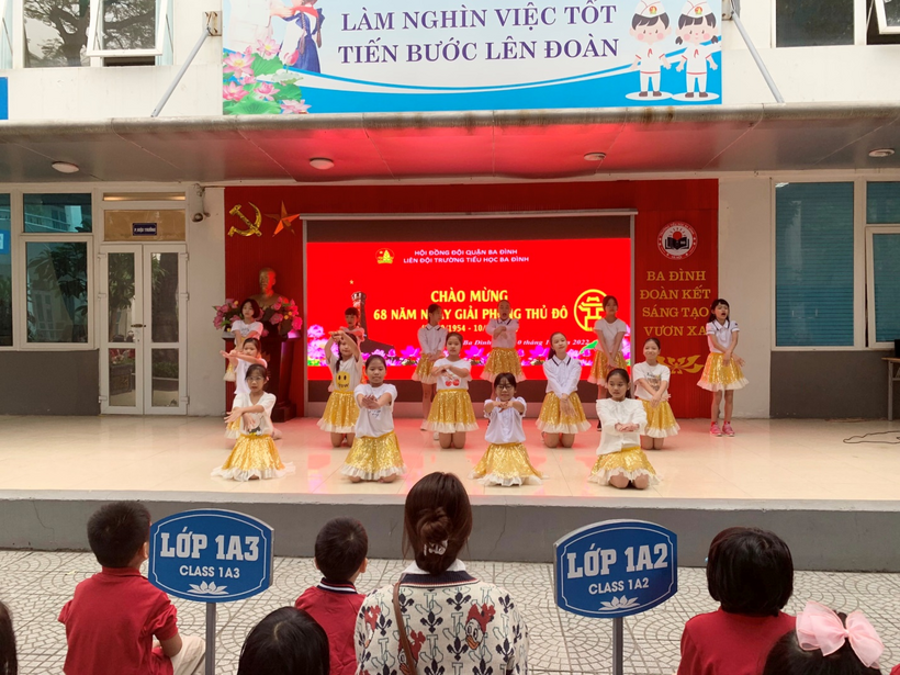 Để ôn lại những giây phút lịch sử, những truyền thống vẻ vang của dân tộc ta, sáng nay - ngày 10/10/2022 trong chương trình Sinh hoạt dưới cờ, trường Tiểu học Ba Đình đã tổ chức Chương trình Chào mừng kỉ niệm 68 năm Ngày Giải phóng Thủ đô và giới thiệu về Nét thanh lịch, văn minh người Hà Nội. Hoạt động diễn ra trong không khí sôi nổi, đầy hào hứng.