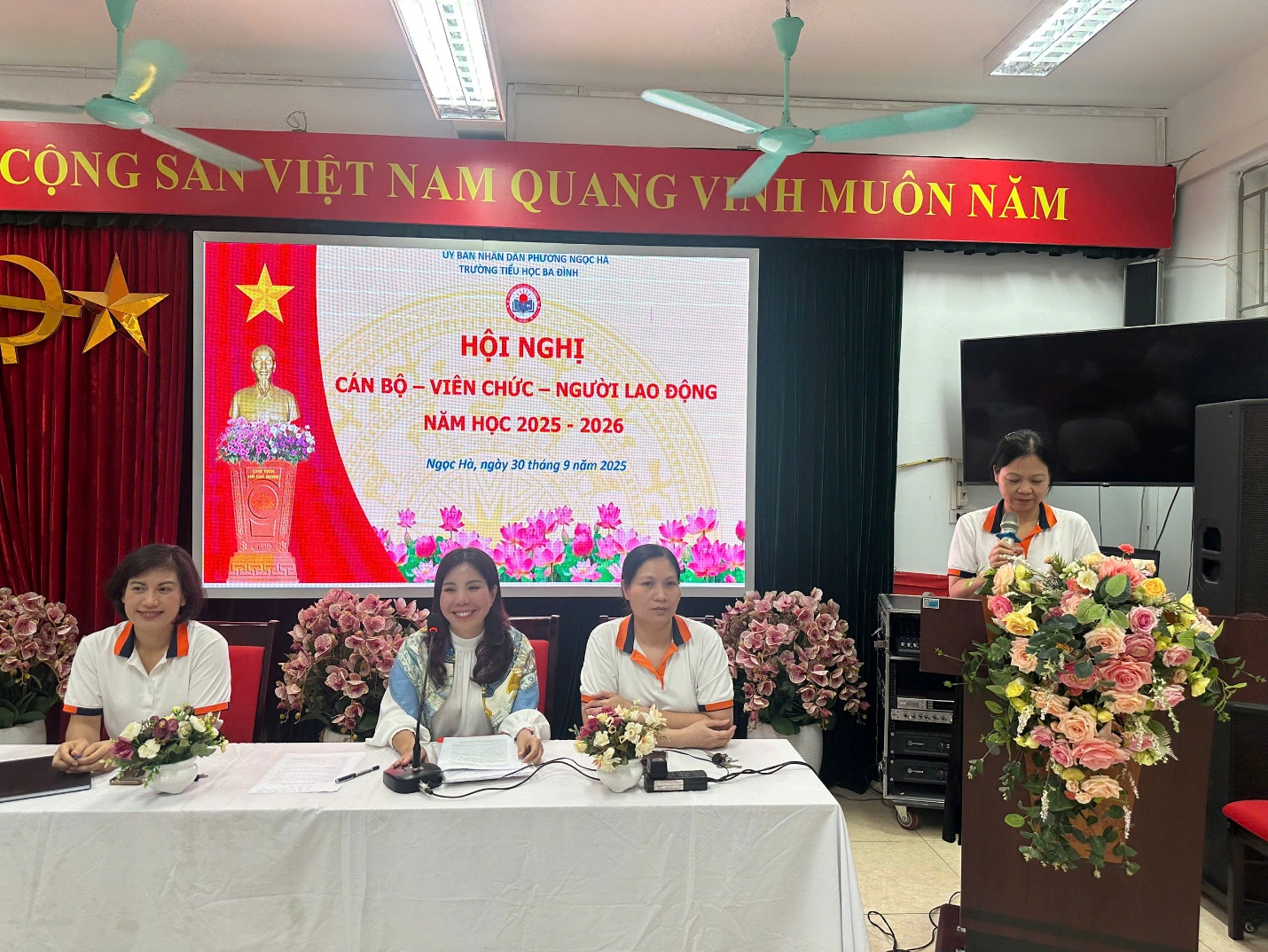 Sáng ngày, 30/9/2025, Trường TH Ba Đình long trọng tổ chức Hội nghị Cán bộ, công chức, viên chức năm học 2025 – 2026. Tham dự hội nghị có 48 công chức, viên chức của trường TH Ba Đình. Hội nghị diễn ra trong không khí trang trọng, dân chủ và đầy vui tươi, phấn khởi. Hội nghị đã nghe đồng chí Nguyễn Thị Thu Hà – Bí thư Chi bộ - Hiệu trưởng nhà trường báo cáo việc thực hiện nghị quyết Hội nghị CBCC, VC năm học 2024 – 2025. Thành công của Hội nghị cũng thể hiện sự quyết tâm của CB, CC, VC trường TH Ba Đình trong việc thực hiện thắng lợi chỉ tiêu năm học 2024 – 2025. Chúc mừng thành công của Hội nghị, chúc mừng nhà trường với những kết quả đã đạt được và chào đón những kết quả tốt đẹp hơn trong năm học 2025 – 2026!