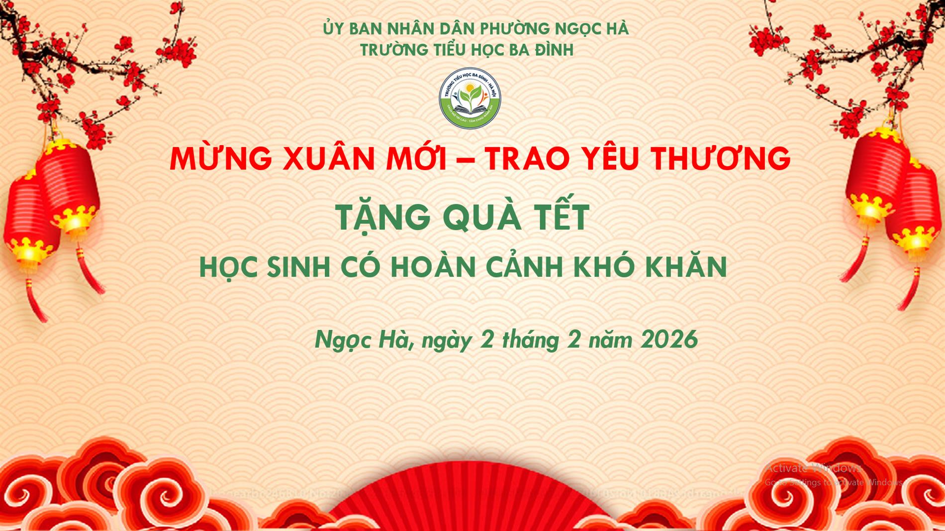 Trường Tiểu học Ba Đình tặng quà Tết cho học sinh có hoàn cảnh khó khăn nhân dịp Tết nguyên đán 2026