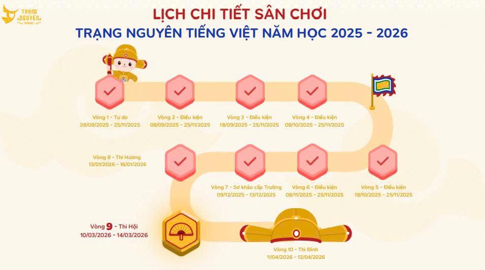 TrườngTiểu học Ba Đình Thông báo Lịch thi Sân chơi Trạng Nguyên Tiếng Việt năm học 2025 – 2026: Vòng 9 – Thi Hội dành cho khối 4 - 5