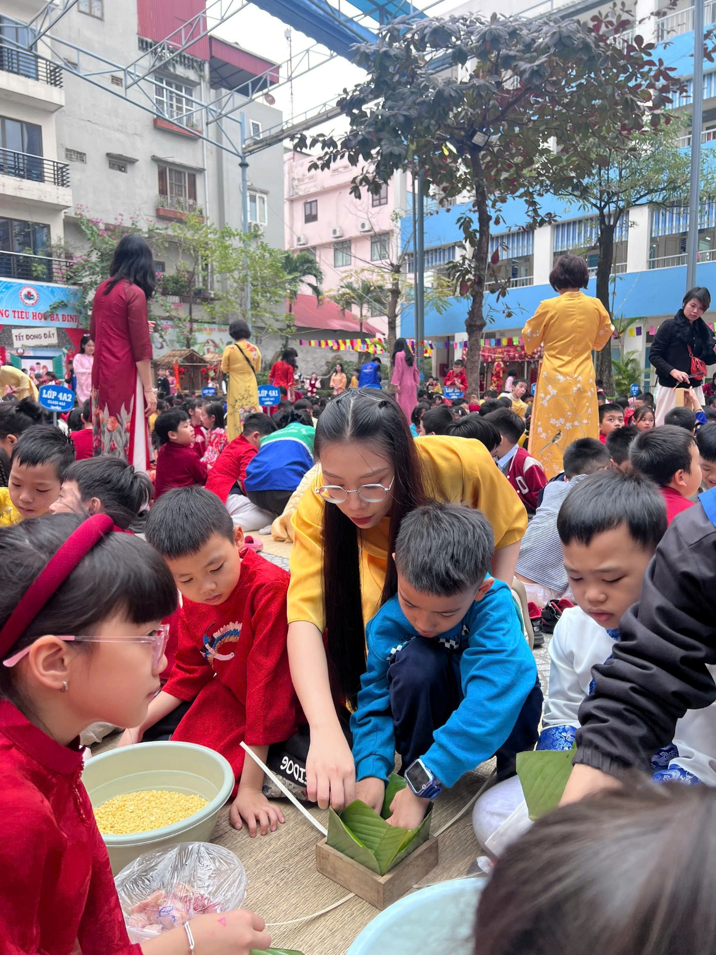 Ngày 30/1/2026, dưới nắng xuân dịu nhẹ của những ngày giáp Tết, sân trường Tiểu học Ba Đình hôm nay rộn ràng hơn bao giờ hết với Ngày hội Bánh chưng – Hội chợ Xuân 2026. Trong không khí náo nức ấy, hình ảnh học sinh lớp 2 tham gia hoạt động gói bánh chưng đã để lại nhiều cảm xúc đẹp và ý nghĩa sâu sắc.