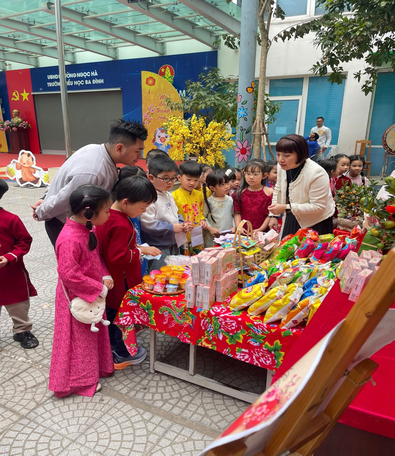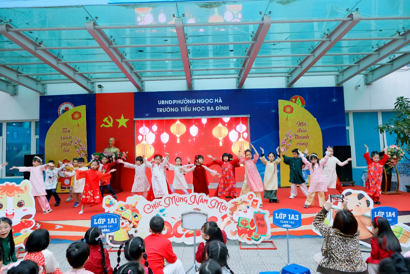 Đặc biệt, với các em học sinh lớp 1, đây là lần đầu tiên được tham gia một ngày hội quy mô toàn trường – nơi các em vừa được tuyên dương những nỗ lực trong học tập của một học kì dưới mái trường Tiểu học Ba Đình, vừa được hòa mình vào không gian Tết cổ truyền ngập tràn sắc xuân.