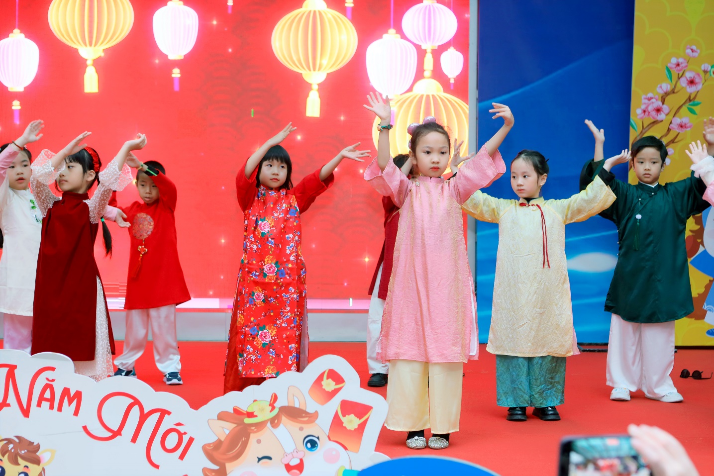 Mở đầu là không khí rộn ràng của các tiết mục văn nghệ “ Vạn sự như ý” mừng xuân của lớp 1A3. Lần đầu đứng trên sân khấu lớn, học sinh lớp 1 còn chút bỡ ngỡ, nhưng bằng sự cố gắng và niềm say mê, các em đã trình diễn những bài múa, bài hát hồn nhiên, trong trẻo, nhận được sự cổ vũ nồng nhiệt từ thầy cô, phụ huynh và các anh chị khối trên.Mỗi nụ cười, mỗi bước nhảy đều thể hiện sự tự tin đang dần được bồi đắp trong môi trường giáo dục thân thiện của nhà trường.