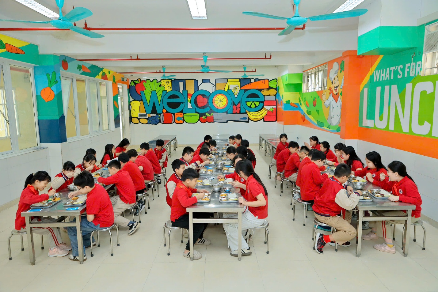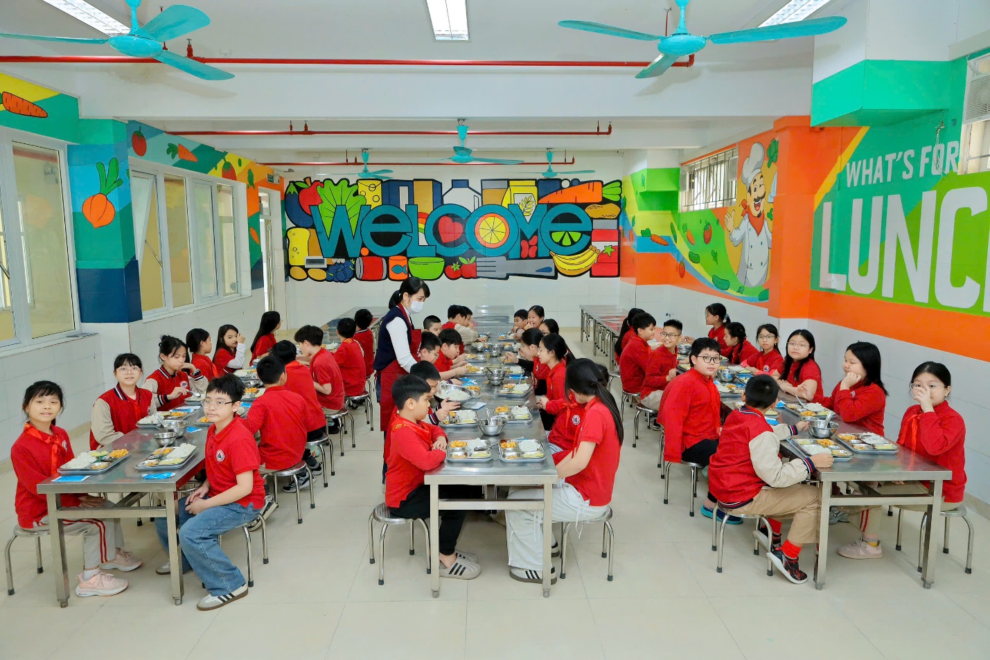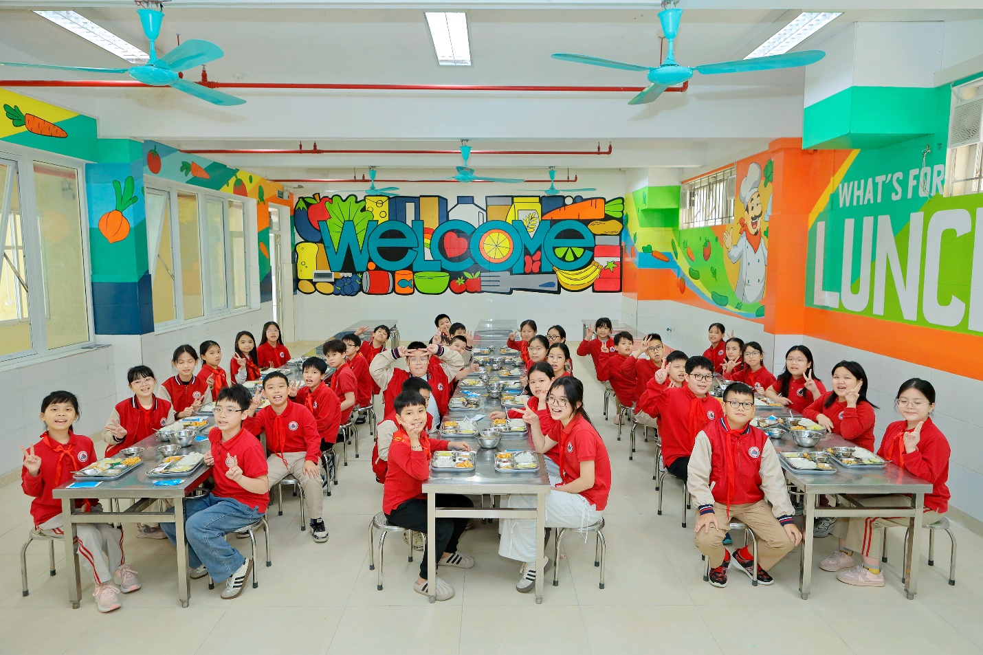 Thấm nhuần tư tưởng ấy, nhà trường xác định việc xây dựng một nhà ăn “Đa sắc màu – Giàu dinh dưỡng.” là khoản đầu tư xứng đáng nhất cho tương lai. Không gian nhà ăn được thiết kế khoa học, tràn ngập ánh sáng tự nhiên và màu sắc ấm áp không chỉ đơn thuần phục vụ bữa ăn, mà còn kiến tạo một môi trường tâm lý tích cực, giúp các con học sinh thư giãn để cảm thấy hạnh phúc và ngon miệng hơn.