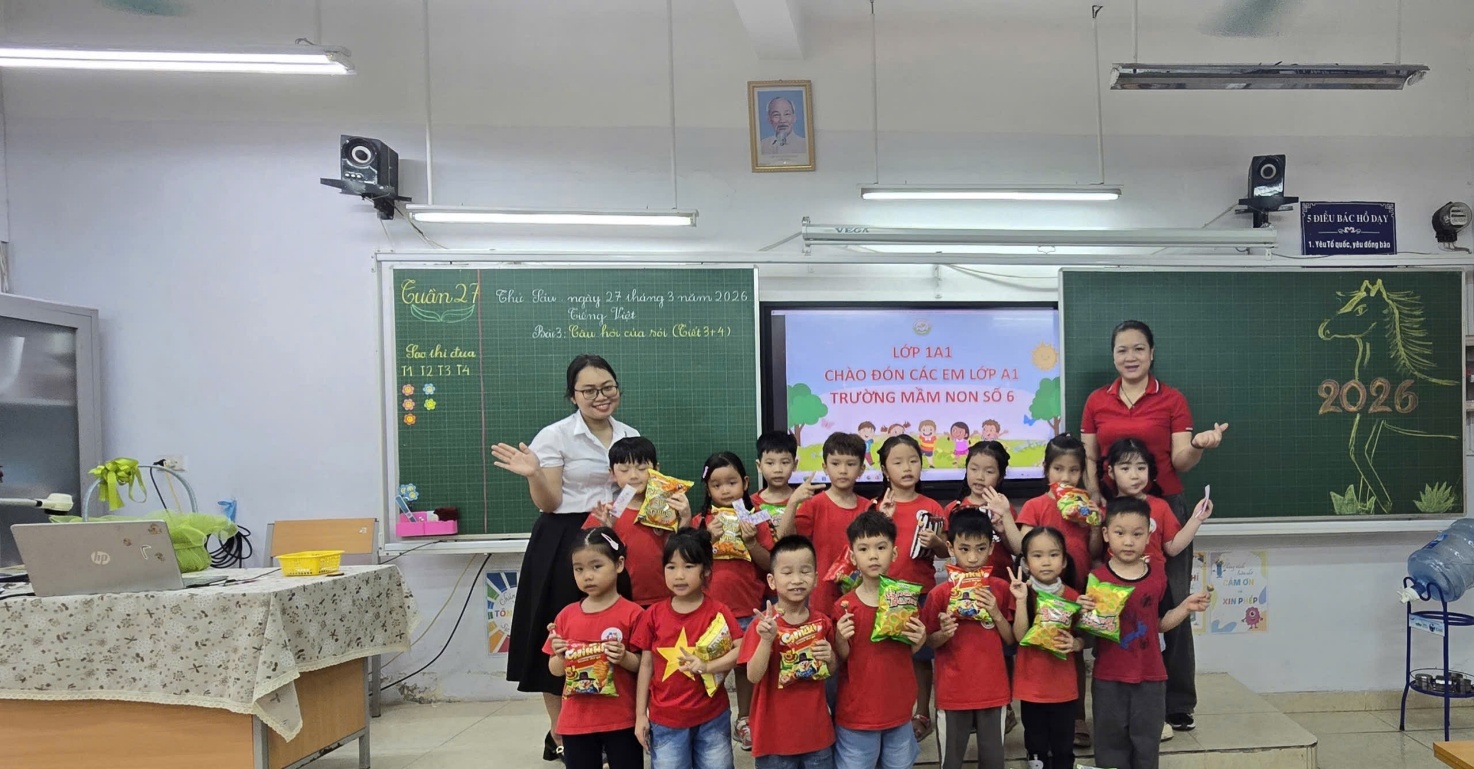 Ngày 27/3/2026, ngày hội tham quan trải nghiệm vui đón học sinh lớp 1 Trường Mầm non số 6 tại Trường Tiểu học Ba Đình đã diễn ra trong không khí vui tươi, ấm áp và đầy ý nghĩa. Ngay từ cổng trường, các em nhỏ đã được thầy cô và anh chị học sinh chào đón bằng những nụ cười thân thiện, những lời hỏi thăm dịu dàng, giúp các em cảm thấy gần gũi, bớt bỡ ngỡ trước ngôi trường mới.