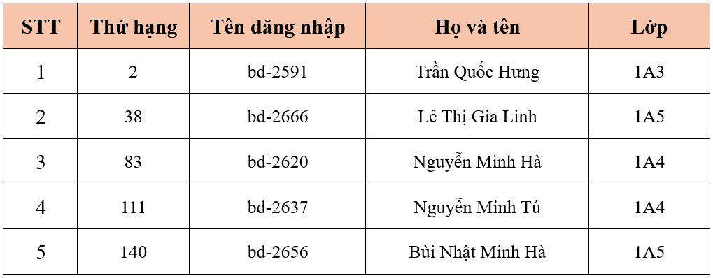 Trường Tiểu học Ba Đình thông báo Danh sách học sinh đủ điều kiện tham gia vòng chung kết cấp khu vực Đấu trường Tiếng Anh - Năm học 2025 - 2026 - Khối 1