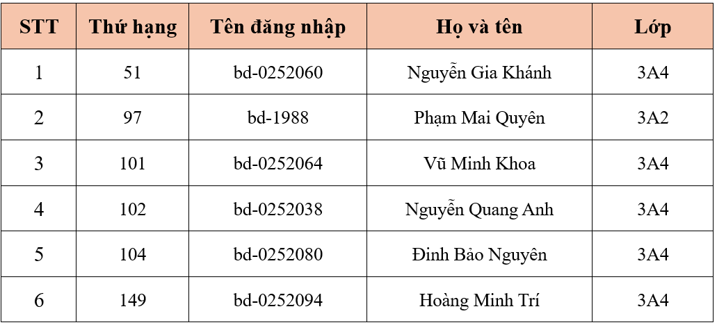 Trường Tiểu học Ba Đình thông báo Danh sách học sinh đủ điều kiện tham gia vòng chung kết cấp khu vực Đấu trường Tiếng Anh - Năm học 2025 - 2026 - Khối 3