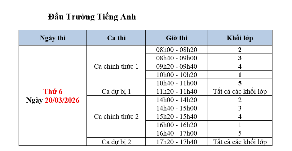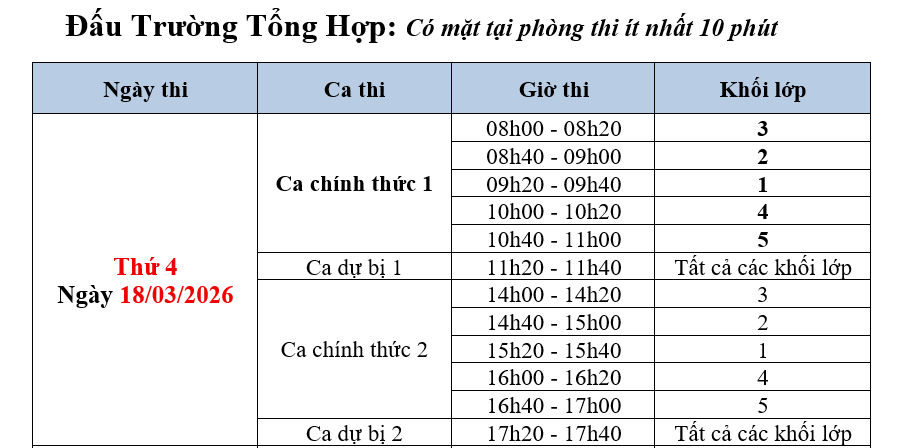 Lưu ý: Mỗi ca thi có đề thi riêng, nhưng các đề thi tương đương về mức độ.