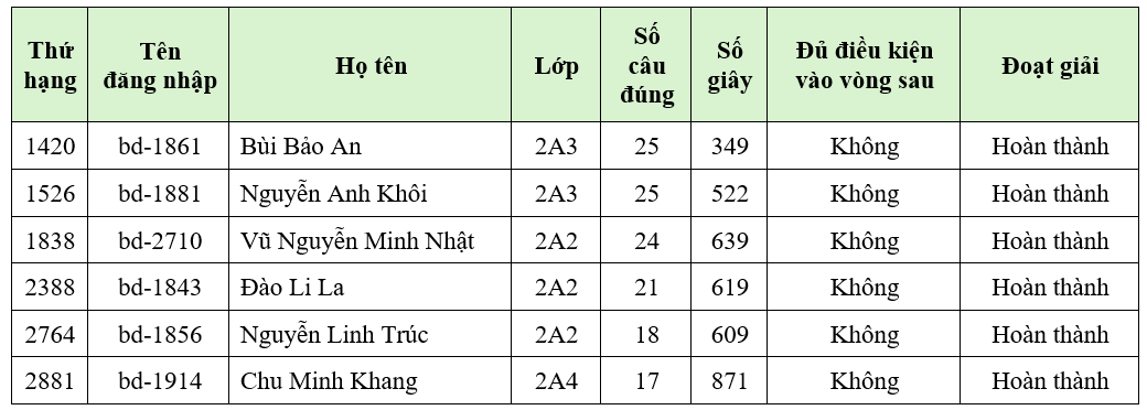 - Giải Bạc: Thuộc top 8% tiếp theo, tối thiểu 25 điểm.