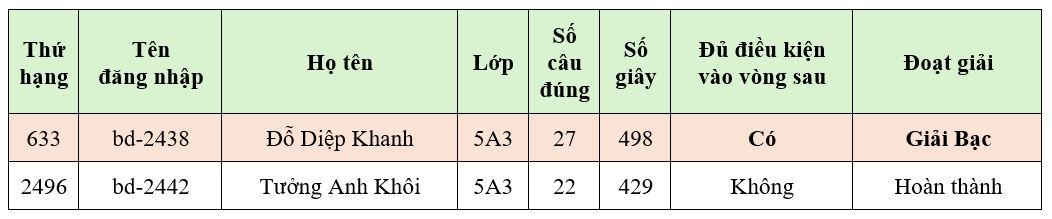 - Giải Bạc: Thuộc top 8% tiếp theo, tối thiểu 25 điểm.