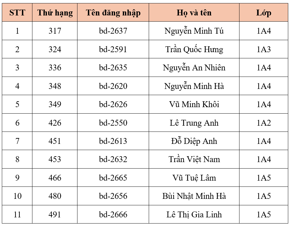 Trường Tiểu học Ba Đình thông báo Danh sách học sinh đủ điều kiện tham gia Sân chơi Đấu trường Vioedu - Tổng hợp - Cấp trường năm học 2025 - 2026 - Khối 1