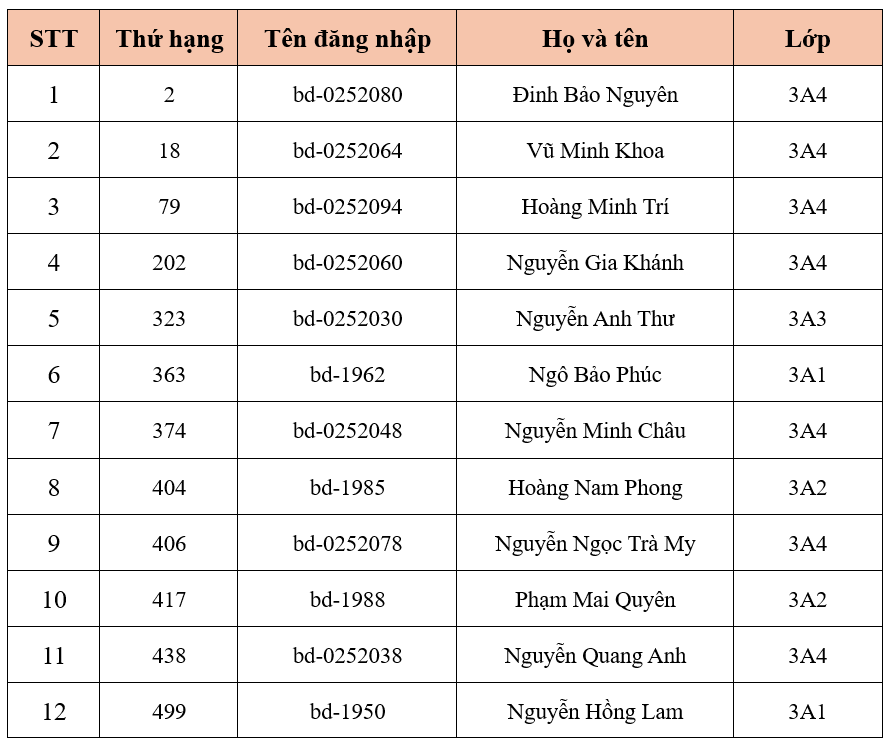 Trường Tiểu học Ba Đình thông báo Danh sách học sinh đủ điều kiện tham gia Sân chơi Đấu trường Vioedu - Tổng hợp - Cấp trường năm học 2025 - 2026 - Khối 3