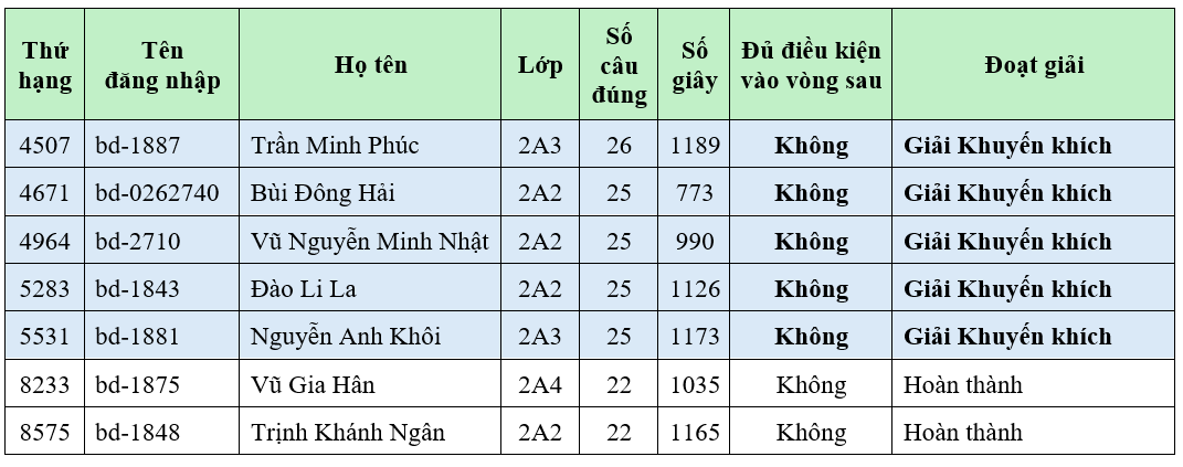- Giải Bạc: Thuộc top 8% tiếp theo, tối thiểu 25 điểm.