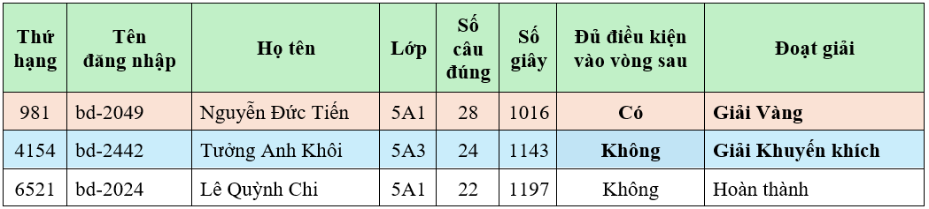 - Giải Vàng: Thuộc top 5%, tối thiểu 27 điểm.