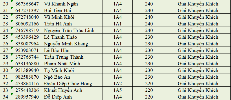 Trường Tiểu học Ba Đình thông báo kết quả Sân chơi Trạng Nguyên Tiếng Việt năm học 2025 - 2026 - Vòng sơ khảo - cấp trường - Khối 4
