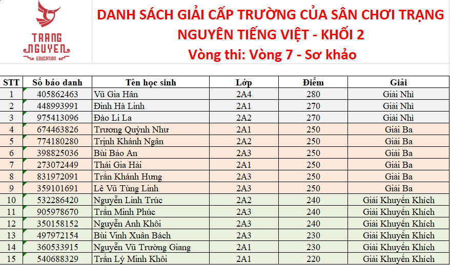 Trường Tiểu học Ba Đình thông báo kết quả Sân chơi Trạng Nguyên Tiếng Việt năm học 2025 - 2026 - Vòng sơ khảo - cấp trường - Khối 2