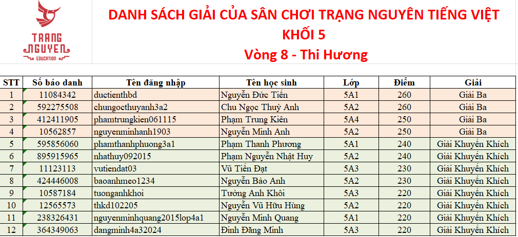 Trường Tiểu học Ba Đình thông báo kết quả Sân chơi Trạng Nguyên Tiếng Việt năm học 2025 - 2026 - Vòng sơ khảo - cấp trường - Khối 5