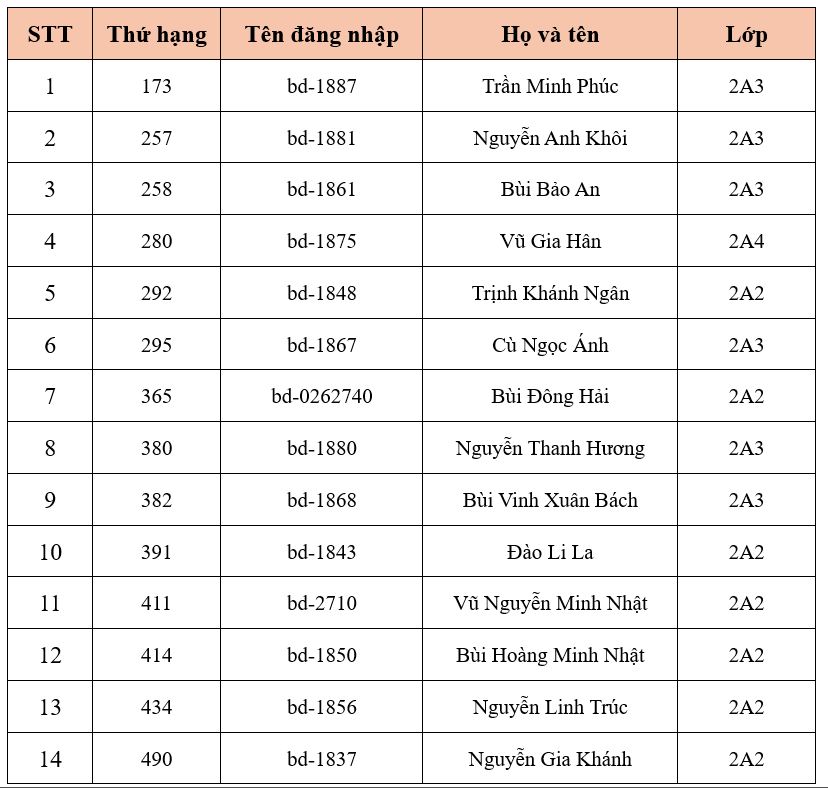 Trường Tiểu học Ba Đình thông báo Danh sách học sinh đủ điều kiện tham gia Sân chơi Đấu trường Vioedu - Tổng hợp - Cấp trường năm học 2025 - 2026 - Khối 2