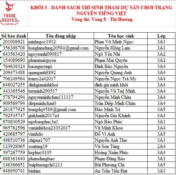 Trường Tiểu học Ba Đình thông báo Danh sách học sinh tham gia Sân chơi Trạng Nguyên Tiếng Việt năm học 2025 - 2026 - Vòng thi Hương - Khối 3