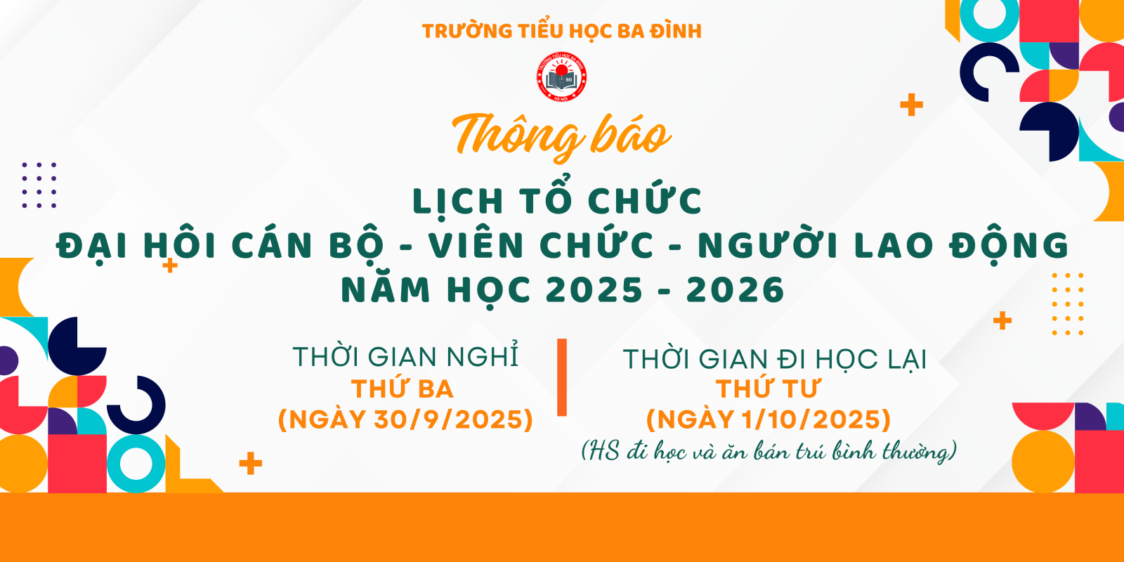 Trường Tiểu học Ba Đình thông báo Lịch tổ chức Đại hội Cán bộ - Viên chức - Người lao động - Năm học 2025 - 2026